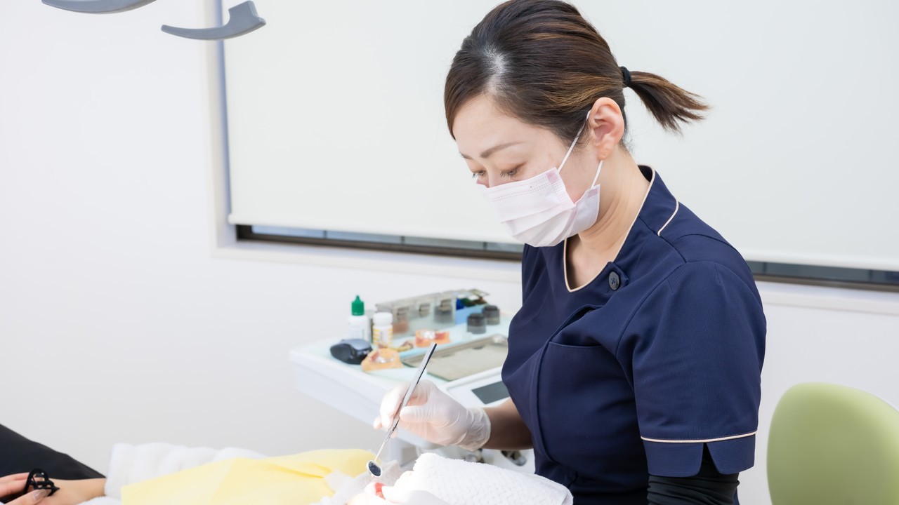 新しい入れ歯をお作りするには時間がかかりますので、その間不自由なくお食事をとっていただくため、現在お使いの入れ歯の調整を行います。
